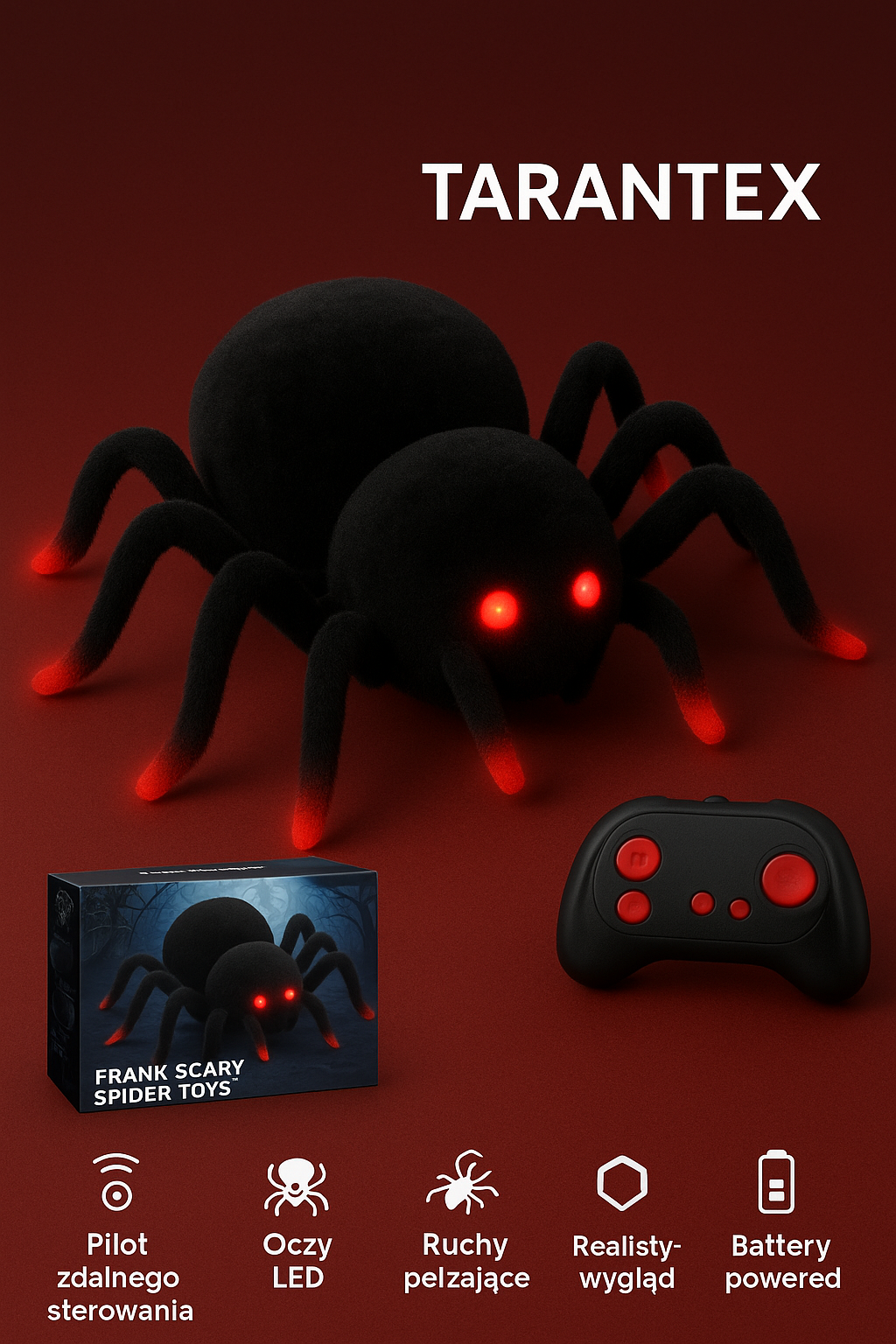 Wygląda jak żywa tarantula. Porusza się płynnie i naturalnie. Gdy zapalają się jego podświetlane oczy, gwarantowana reakcja „wow” za każdym razem.